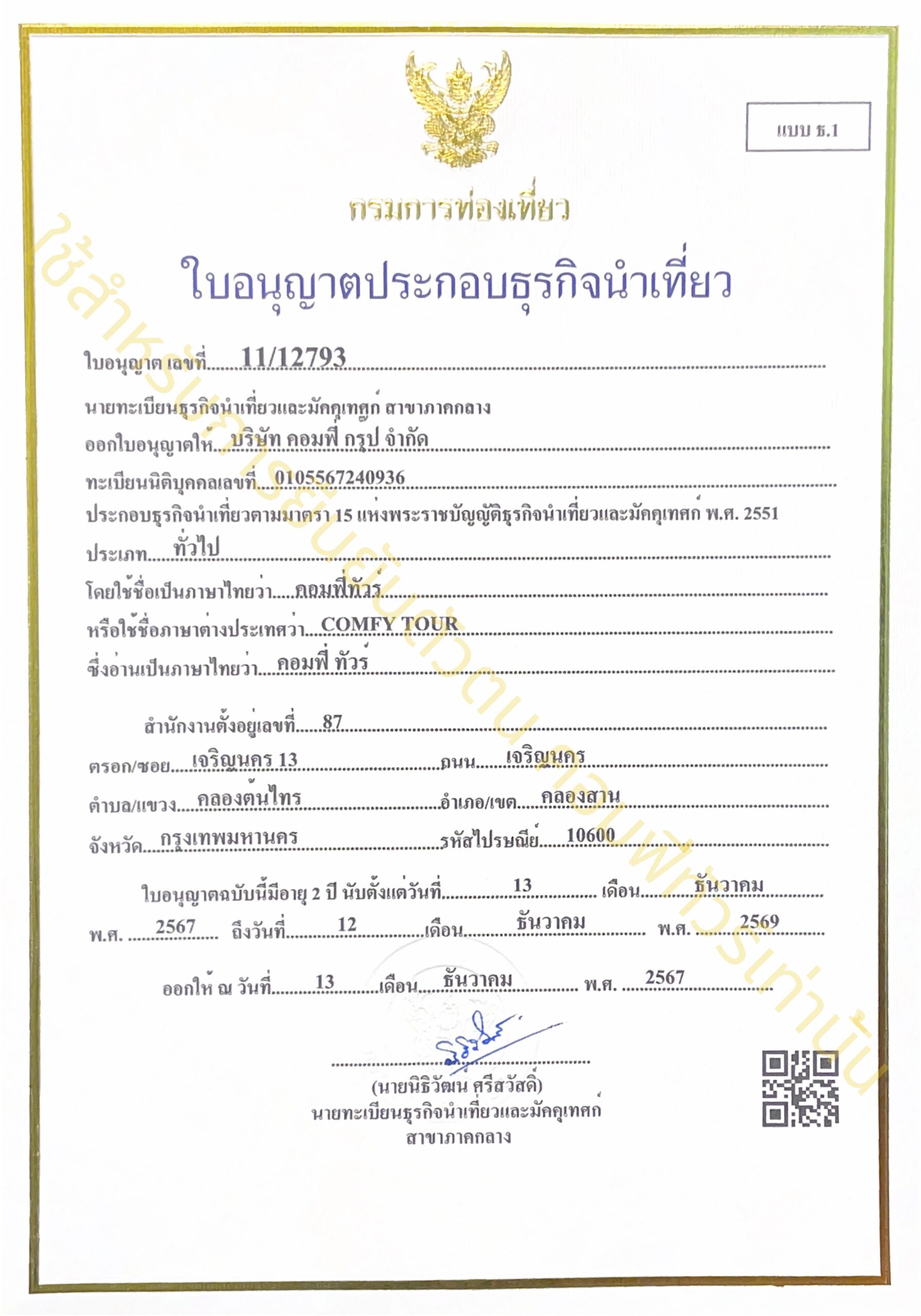 ไม่ผิดหวังที่เชื่อเพื่อนและเลือกจองกับ Comfy Tour เพื่อพาคุณพ่อคุณแม่เที่ยว บริการดีเกินคาด ให้ข้อมูลครบถ้วน และติดตามงานให้ทุกขั้นตอน